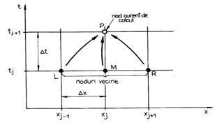 Этот метод позволяет определить глубину воды hP в определённое время Δt с помощью уравнения, приведённого выше, после чего определяется скорость Up в точке P.