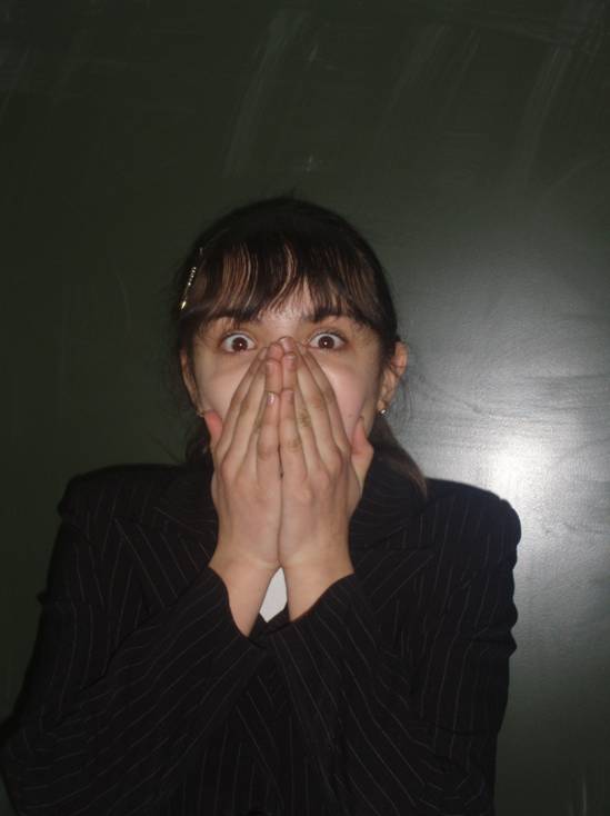 2. Еще человек врет, когда он при разговоре он подносит руку ко рту, как бы прикрывая его, или держит руку около горла. Если 5-летний ребенок скажет неправду своим родителям, то сразу же после этого он прикроет одной или обеими руками рот. Этот жест «прикрывания рта рукой подскажет родителям о том, что ребенок солгал, но на протяжении всей своей жизни человек использует этот жест, когда он лжет, обычно меняется только скорость совершения этого жеста. Моя одноклассница Аня (Приложение 2) часто использует этот жест, когда отвечает на уроке. Учитель задает вопрос, Аня не знает ответа, а когда учитель проговаривает правильный ответ, Аня любит закрывать рот обеими руками, будто она знала это, но забыла!