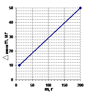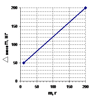 Погрешность весов зависит от нагрузки. Графики зависимости погрешности весов от нагрузки для двух типов учебных весов представлены на рисунках 1а и 1б. Легко заметить, что если масса взвешиваемого тела больше или равна 10 г, то погрешность весов школьных для лабораторных работ не превышает пяти тысячных его массы, т. е. 0,5%. В школьных экспериментах обычно погрешности измерения других физических величин оказываются существенно больше, поэтому, для упрощения расчетов в большинстве случаев можно принять