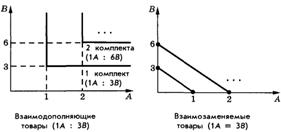 Задача №7 на построение кривых безразличия: Постройте кривые безразличия полезности: 1) для двух взаимодополняющих товаров в пропорции 3 : 1; 2) для двух абсолютно взаимозаменяемых товаров пропорции 3 : 1.