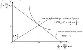 в) та точка, в которой наклон бюджетной линии равен наклону касательной к ней кривой безразличия;