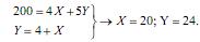 Если У = 0, то весь доход тратится на товар Х, количество которого равно 20.
