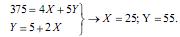 II сочетание: 2 литра молока ´ 1д. ед + 4 буханки хлеба ´ 0,5 = 4 д. ед.