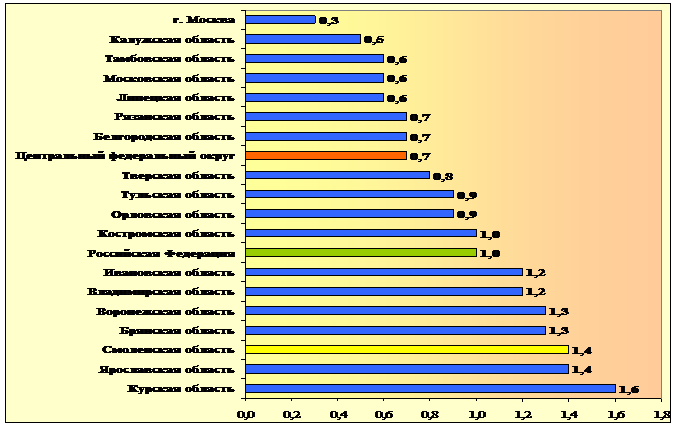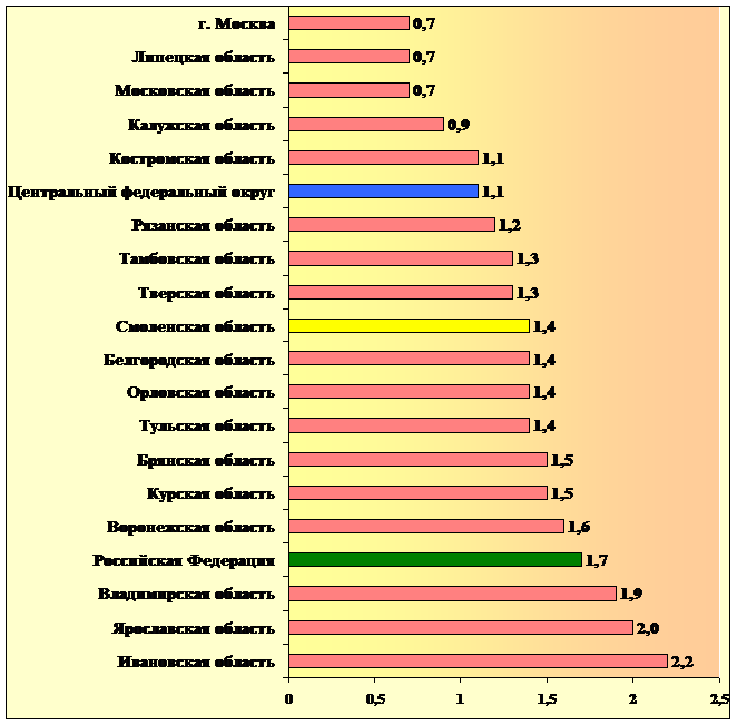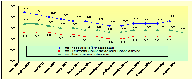 По коэффициенту напряженности на рынке труда на 1 апреля 2012 года Смоленская область из восемнадцати регионов ЦФО находится лишь на шестнадцатом месте: