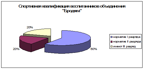 Все 26 воспитанников к моменту выпуска должны иметь не ниже 3 разряда по спортивному туризму. 20 в настоящее время продолжают участвовать в соревнованиях, спортивных походах, многие повысили свою спортивную квалификацию. На сегодняшний день 12 человек имеют – норматив I разряда, 4 человек – норматив II разряда, 4 – имеют III разряд.