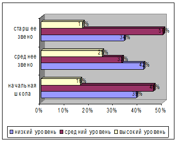 Данные анкетирования показали, что уровень сформированности учебно-познавательной деятельности у учащихся нашей школы недостаточно высок: учащиеся не могут на должном уровне планировать, осуществлять контроль и работать по времени. Так, не умеют планировать свою деятельность 39% старшеклассников; 66% учащихся среднего и старшего звена недостаточно владеют навыками рациональной деятельности; 58% старшеклассников не умеют отстаивать свою точку зрения, что является низким показателем самостоятельности мышления.