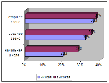 Кроме того, сам по себе процесс учебно-познавательной деятельности требует значительной затраты умственных сил и напряжения, что удается далеко не каждому, поскольку и подготовка его к осуществлению интеллектуальных операций довольно сложна. Поэтому проблему усвоения составляет не только овладение знаниями, но и сам процесс длительного устойчивого внимания, напряжения умственных сил, воли, умение сосредоточиться на главном и необходимом. Выявив путем анкет, тестов объем внимания, учебную мотивацию, мы выявили, что большинство учащихся школы имеют средний и низкий уровень внимания и низкую мотивацию, что конечно не может не сказываться на результатах обучения, его качестве.