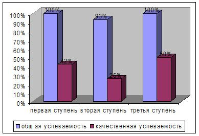Анализируя качественную и общую успеваемость по ступеням, мы делаем выводы о том, что наибольшее снижение приходится на вторую ступень, когда контроль родителей по сравнению с начальной школой ослабевает, а сами ребята еще не осознают важность и необходимость повышения уровня знаний. Решение этой проблемы мы видим в сотрудничестве родителей и педагогов в участии родителей в учебно-воспитательном процессе школы.