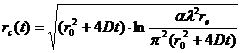 Критический радиус ионизированного следа метеора в (м) в момент времени t (с) после формирования метеорного следа в данной точке, задается как: