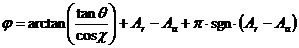 Рассмотрим две эквивалентные системы координат для определения направления на небесной сфере. Азимут φ (относительно направления максимального усиления антенны) и угол возвышения δ диаграмм направленности