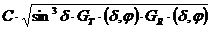 (δ,φ) усиления диаграммы направленности антенн передатчика и приемника относительно изотропного излучателя в свободном пространстве, C константа, соответствующая значению