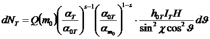 Теперь мы можем вычислить число потоковых метеоров множеств dN зарегистрированных в единицу времени в бесконечно малом секторе dθ: