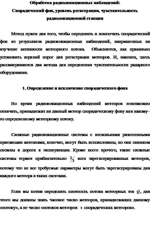 метеорного потока и на момент наблюдения радара, соответствии с формулой 14 на стр. .