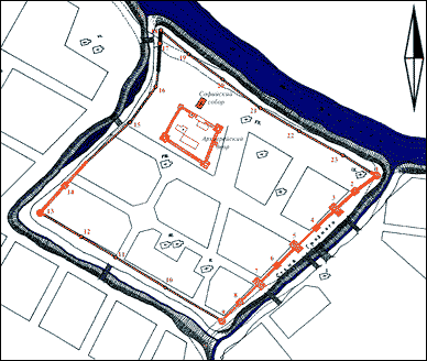 - Сохранившиеся оборонительные сооружения вологодского кремля