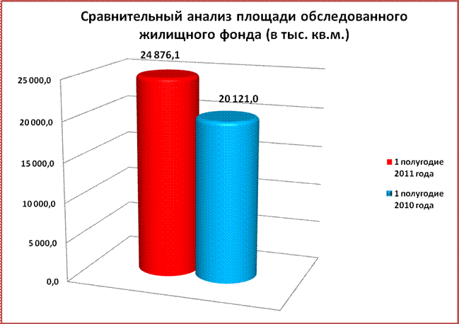 Необходимо отметить, что за I полугодие 2011 года Государственной жилищной инспекцией Волгоградской области по сравнению с I полугодием 2010 года жилищного фонда обследовано на 4 млн. 755 тыс. м2 больше.