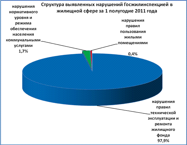 Анализ структуры и динамики правонарушений за I полугодие 2011 года позволяет сделать вывод, что наибольшее количество допущенных нарушений (6540) связано с несоблюдением лицами, ответственными за ремонт и содержание жилых домов, Правил и норм технической эксплуатации жилищного фонда.