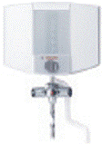 Настенный кипятильник открытого типа (безнапорный) предназначен для приготовления кипятка или горячей воды. Принцип работы: Вода из магистрального водопровода через специальный смеситель (в комплекте поставки) попадает в резервуар. Там благодаря «донному» нагревательному элементу быстро достигает заданной температуры (диапазон от +35 градусов по Цельсию до +100 градусов по Цельсию). Прибор автоматически отключается – при достижении заданной температуры. Слив горячей воды или кипятка из прибора и подмес, при необходимости, холодной воды из магистрали, происходит через специальный смеситель. При кипячении воды образуется пар, который безопасно отводится через дренажный патрубок. Для безопасной и комфортной эксплуатации прибор оснащен лампой индикации рабочего режима и предохранительным термостатом. Резервуар выполнен из специального термопластика. Регулятор температуры и индикаторрабочего режима на лицевой панели. В комплекте с KBA 5 KА специальный смеситель, материал — хромированная латунь. Производитель Германия. Срок гарантии заводской. Напряжение питания 220 вольт 50 герц.