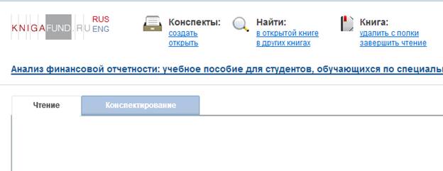 К нашему величайшему сожалению, ЭБС «Книгафонд» не дает возможности копировать, распечатывать или сохранять на «флешку» выбранную Вами информацию. Здесь можно только конспектировать информацию. Конспектирование проводится в условиях уже открытого документа. Сверху-слева имеется клавиша «Копирование», после нажатия которой копирование становится возможным.