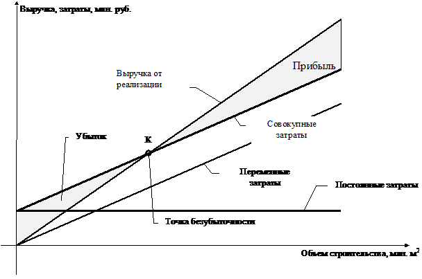 Рис. 2.13. Взаимосвязь объема производства, затрат и прибыли