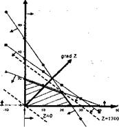 Отсюда оптимальным решением задачи является х*1 =20, х*2 = 10.