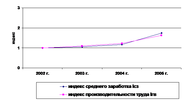 Для наглядности динамику индексов среднего заработка (Iсз) и производительности труда (Iгв) за 2002 – 2006 г. г. можно отразить графически (рис. 2.5).