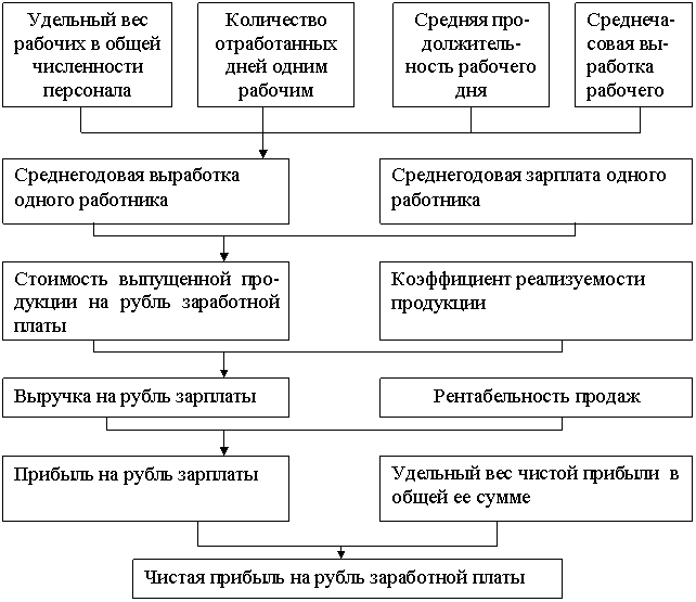 Рис. 2.6 Структурно-логическая схема факторного анализа показателей эффективности использования фонда заработной платы