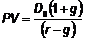 Если ожидается, что дивиденды предприятия будут расти одинаковыми темпами в течение длительного периода времени, текущая стоимость акции составит: