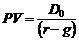 Если ожидается, что дивиденды предприятия будут расти одинаковыми темпами в течение длительного периода времени, текущую стоимость акции можно рассчитать по следующей формуле: