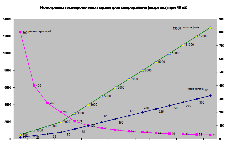 Нормативы планировочных параметров микрорайона (квартала) при жилищной обеспеченности 40 м2 на жителя | |||||||||||||||