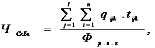 где ЧСкБк —численность работников занятых переработкой сырья, чел.; qijk—количество обработанной продукции i-го вида в j-ой отрасли в k-ом году; tijk—затраты труда на производство единицы продукции i-го вида в j-ой отрасли в k-ом году, чел.-часов; Фр..в..к—годовое рабочее время при 36-часовой рабочей неделе, час.