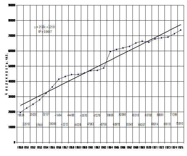 Миллионный рубеж добычи рыбы был преодолен в результате поступления в регион больших морозильных рыболовных траулеров. Такая высокая динамика вылова рыбы за рассматриваемый период повлияла на создание дополнительных рабочих мест не только на добывающих предприятиях, но и в обслуживающих хозяйствах (тарное и сетевязальное производство, транспортный и обрабатывающий флот, рыбный порт, наука и подготовка кадров, судостроение и судоремонт и др.) Рис. 1 характеризует мощную динамику увеличения численности работников рыбной отрасли за счет пополнения рыболовецкого флота судами из новостроя.