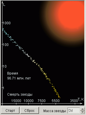 Примером такой модели может служить модель, реализованная в «Открытой Астрономии», воспроизводящей по реальным научным данным диаграмму спектр-светимость, «Эволюция звезды» (рис.2).