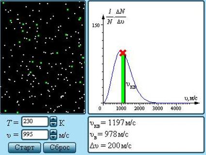 Рис. 4. Интерактивная модель «Распределение Максвелла».