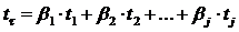 Для оценки влияния изменения переменных pj на изменение t определяются стандартизованные коэффициенты (bj) множественной регрессии и выражение (7) представляется в стандартизованном масштабе: