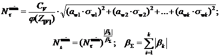 где: Z[V] – квантиль нормированного нормального распределения при значениях [V]LF; j( Z[V]) – плотность вероятности нормированного нормального распределения; sw1, sw2,…, swk - СКО выборок wk; awk и bk – коэффициенты регрессионных моделей (9) и (10) соответственно.
