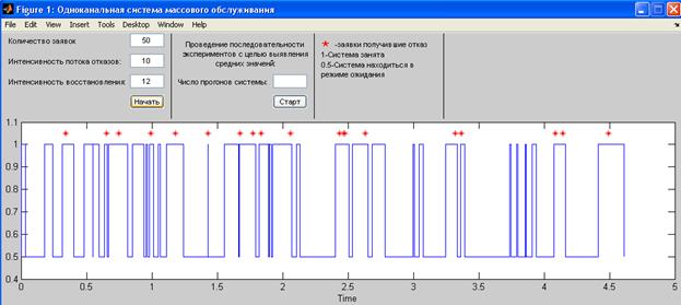 '. Коэффициент готовности ситемы равняется ' num2str(sum(udacha)/(sum(udacha)+sum(neudacha)))...
