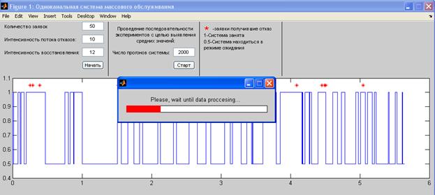 Если количество прогонов системы в ходе статистического анализа велико, необходимо дождаться окончания процесса - появиться окно ожидания (рис. 5).