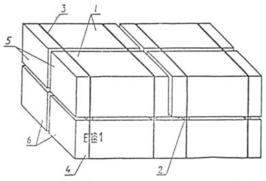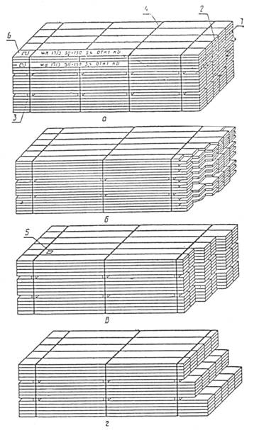 1 - ряд; 2 - стопа; 3 - прокладка; 4 - обвязка; 5 - ярлык; 6 - маркировка