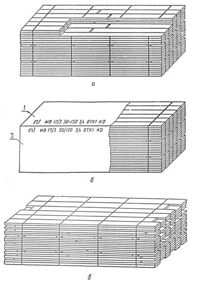 1 - пакеты; 2 - прокладка; 3 - обвязка; 4 - маркировка; 5 - верхний ряд пакетов; 6 - нижний ряд пакетов
