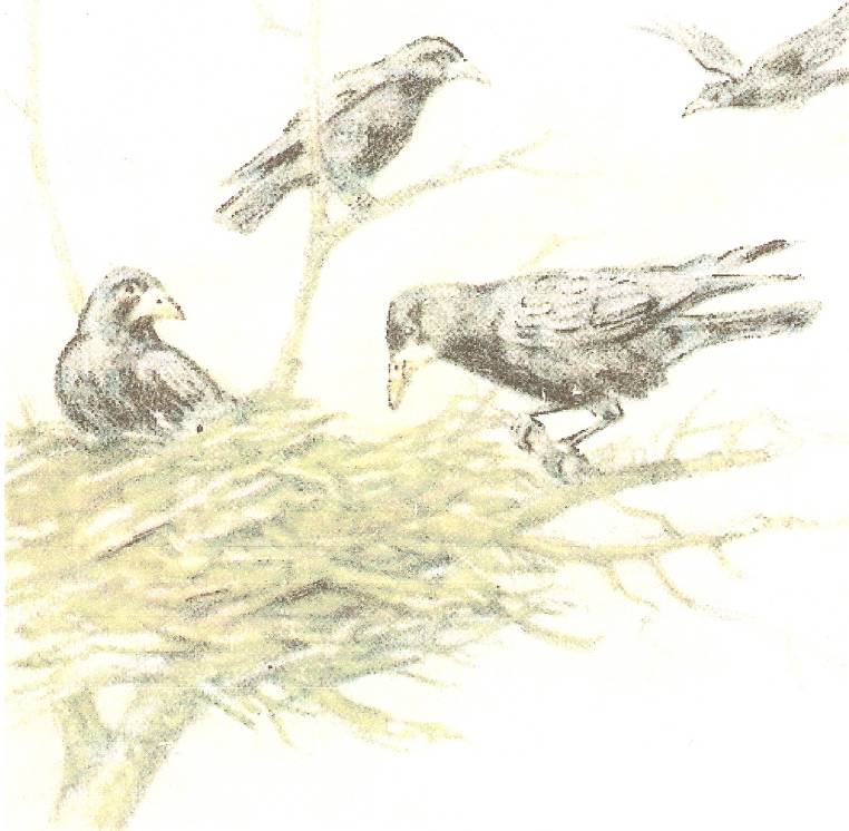 Грач строит свое гнездо на вершине дерева. Так же просто устраивают свои гнезда ближайшие родственники скворца – вороны и галки. (приложение 8)