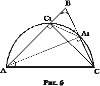 Решение. На стороне АС треугольника АВС как на диаметре опишем полуокружность, которая пройдет через основания высот