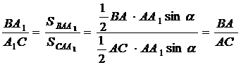 Используя формулу (1) для площади треугольника, можно доказать теорему о биссектрисе внутреннего угла треугольника.