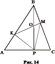 Решение. Пусть ВР и КМ пересекаются в точке О (рис. 14) и