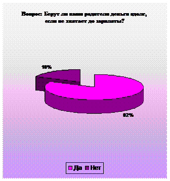 Зарплата мамы – 10000 руб. Зарплата папы – 15000 руб. Детские пособия – 0 руб. Итого: 25000 руб. | Кредит – 5000 руб. Плата за учебу и квартиру сестры - 4000 руб. Питание в школе - 500 руб. Плата за телефон – 500 руб. Плата за воду - 200 руб. На бензин папе - 1500 руб. Продукты питания – 7000 руб. Сотовая связь - 300 руб. Лекарства - 150 руб. Одежда, обувь - 5000 руб. Хозяйственные нужды – 300 р. Итого: 24450 руб. |