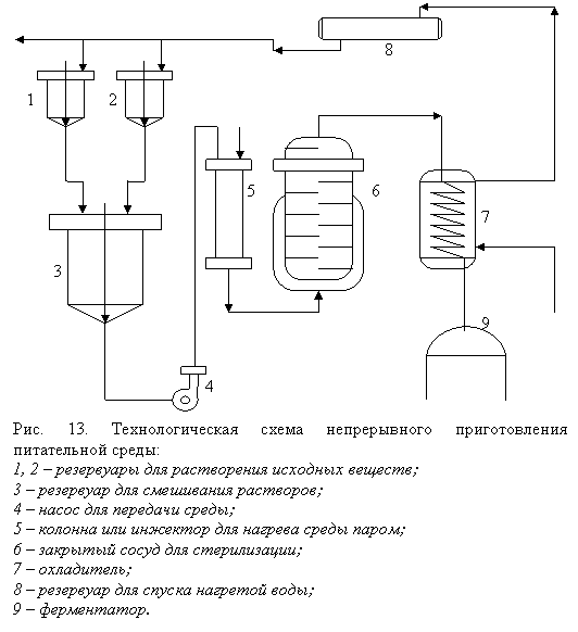 На современных микробиологических предприятиях практически используется только непрерывный метод приготовления среды (рис. 13).
