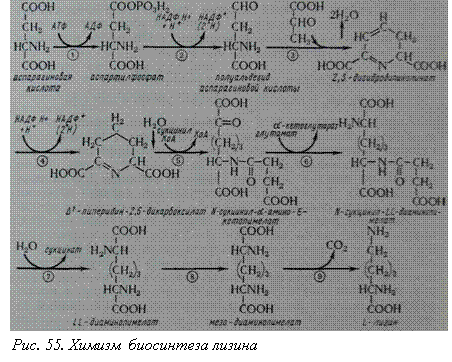 Для биосинтеза лизина используют гомосериндефицитные мутанты ауксотрофных бактерий родов Brevibacterium, Micro-coccus, Corynebacterium и др.