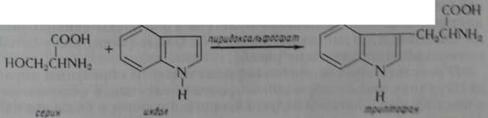 По мнению и , триптофан образуется при конденсации серина и индола в присутствии пиридоксальфосфата: