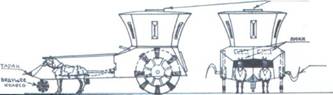 Наша боевая повозка (а еще лучше несколько), вооруженная, скажем, двумя пушками, была бы способна подойти к каре на близкое расстояние и картечью проложить проход для своей кавалерии. Прислугу боевой повозки можно было защитить неким подобием брони. Поскольку скорострельных пушек, а тем более пулеметов в те времена еще не было, не было и необходимости во вращающейся башне: ведь задача заключалась всего лишь в том, чтобы подойти на картечный выстрел и произвести его.