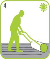 3.Прикатывание, уплотнение. После завершения укладки рулонов заправьте водой специальный садовый каток и прикатайте им Ваш новый газон, либо выполните эту операцию любыми другими подручными средствами. Процедура прикатывания устраняет воздушные полости и обеспечивает плотность соприкосновения основания газона с поверхностью участка. Если уложенный газон оказывается подсушенным, то немного смочите его перед прикатыванием.