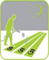 4.Полив. Сразу после укладки обильно полейте газон. Проверьте степень увлажнения, приподняв уголок уложенного полотна (в 10-12 местах по всему участку). Вода должна пропитать не только газон, но и грунт под ним на 2-3 см. В течение первой недели, после укладки, поддерживайте газон и почву на глубине -5 см. - постоянно во влажном состоянии (10-15 литров воды на 1 кв. м., каждый день, рано утром или вечером обильно поливайте газон. Корректируйте норму полива и необходимость, в зависимости от выпадения осадков – дождь. Осуществляйте полив, обязательно, с использованием специальной насадки на шланг - дождеватель. Запрещено поливать газон прямой струей воды, еще и под сильным напором, давлением воды. Это очень Важно и необходимо!!!